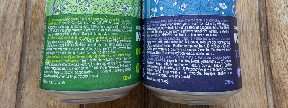 Složení: čajový výluh (maté nebo čajovník), cukr, kombuchové kultury, oxid uhličitý a Bacillus coagulans, který samozřejmě s kombuchovým konceptem nijak nesouvisí, to víme, jen ho teď výrobci prostě přidávají, protože nechtějí zůstat pozadu za konkurencí. Stále platí, že ani výrobce limonády, ani výrobce probiotika neručí za jakýkoliv pozitivní, preventivní či léčivý efekt tohoto mikroba.