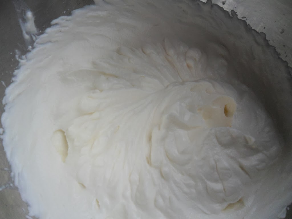 Zabere to pár minut. Nejdřív se vám vytvoří kysaná šlehačka, takže hrozí prudké mizení základní hmoty. Mňam.
