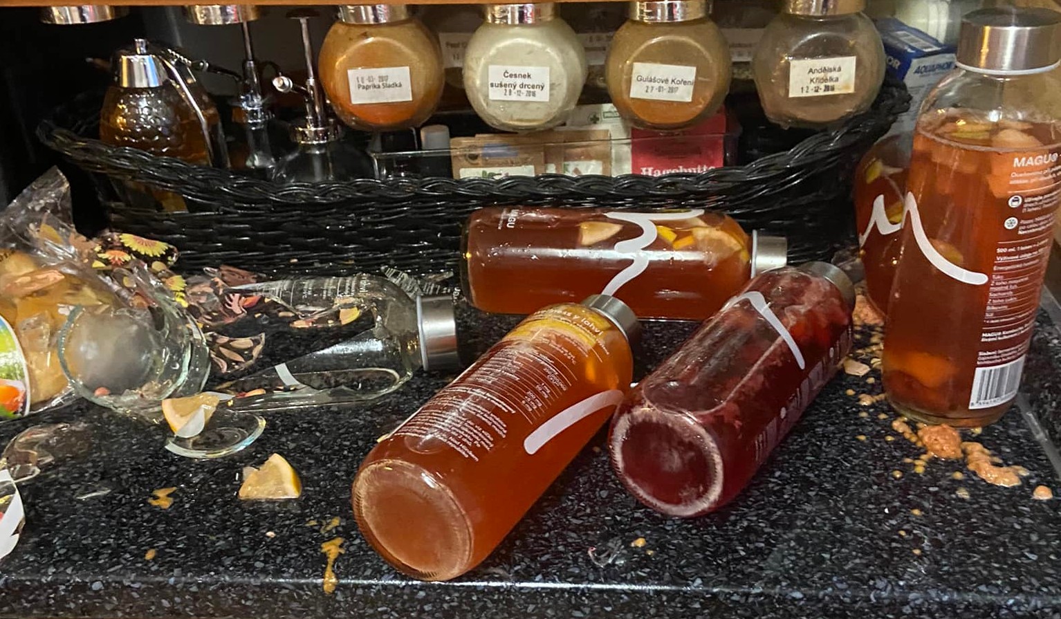 Jakmile se vám podaří kvasinky namnožit a přimět k činnosti, dávejte si setsakramentský pozor — opakuji to ve všech návodech ke kulturám a všem zájemcům o ty nejnaperlenější internetová šampíčka: nemáte to úplně pod kontrolou a vaše hermeticky uzavřené skleněné nádoby mohou mít (a nejspíš mají) vady, které okem nezpozorujete. Stačí jedna teplejší noc, trocha ovoce v kombuše a druhý den už vyndaváte střepy z oka, kterým už pak nepoznáte do konce života vůbec nic. Máme k tomu kompletní článek Fermentovaný domácí granát.