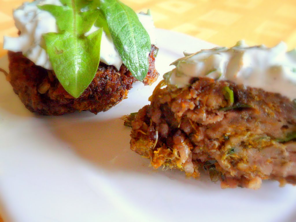 Vykuchejte pampeliškové květy od všeho zeleného. Smíchejte s masem a kořením a uplácejte pevné placičky, které ogrilujte nebo nasucho orestujte na pánvi. Namísto salátu použijte pampeliškové listí nebo přidejte pampeliškovou raitu — nasekané lístky smíchejte s česnekem, jogurtem, solí, pepřem a olivovým olejem.