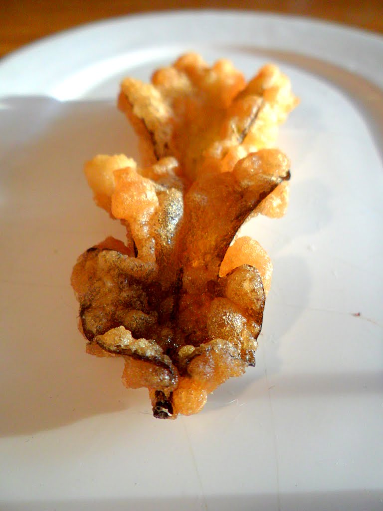Nebo z nich udělejte tempuru. Tempura je japonský předkrm ve formě osmaženého čehokoliv v křupavém těstíčku s omáčkou vedle. Takže proč by to cokoliv nemohlo být listí pampelišek? Jde takhle připravit víceméně jakýkoliv pevnější list. Kromě pampelišky třeba taky jitrocel, kostival, šťovík, plicník nebo třeba mladé, měkké lístky víceméně jakéhokoliv stromu — dub, třešeň, ořešák, javor, olše… Kdesi jsem viděla recept na jitrocelové řízky, tedy osmažené listí v trojobalu. Tempura mi přijde jednodušší.