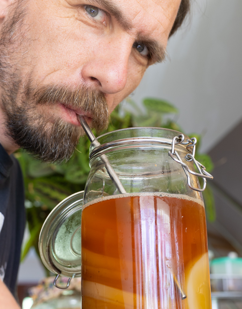 👉 Ať už jsou receptury, výroba, záměry a etiketové proklamace jakékoliv, můžete vzít jed na to, že se do drtivé většiny výroben nikdy nepodíváte a nezjistíte, jak byl výrobek vyroben, a to s výmluvou na bezpečnost potravinářského provozu a tajemství unikátních receptur. Mohli byste totiž vynést na světlo světa to děsně tajné a unikátní tajemství, že se nejdřív udělá silně octový zákvas, ten se ochutí, navoní a nabarví, zpasterizuje, na lince dosytí CO₂ a expeduje. Na čemž není nic špatného, ale ani tajného. Nebo že jiný, „poctivý“ výrobce nalahvuje živý kombuchový nápoj tak, jak mu vyteče z fermentačního tanku a pustí to do světa. Na čemž je špatně snad skoro všechno. Jde hlavně o to, aby ten pověstný bobek zůstal před spotřebiteli co nejdéle dostatečně naleštěný.