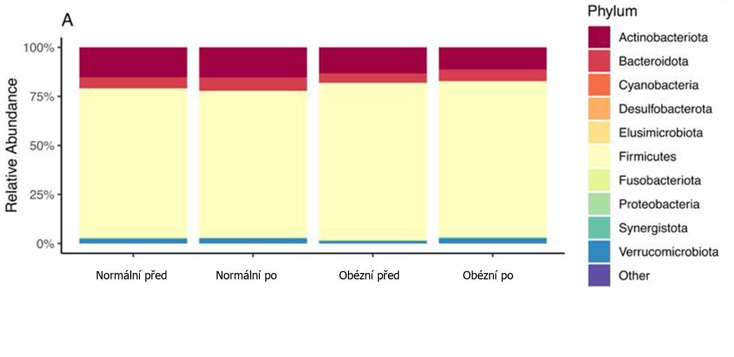 Studie se zúčastnilo 46 zdravých respondentů z Brazílie rozdělených do dvou skupin: osoby s normální váhou a osoby obézní. Po dobou osmi týdnů konzumovali denně 200 ml. Průběžně se sbíraly a mrazily vzorky stolice a ty se pak všechny sekvenovaly na mikrobiální DNA. Zjistilo se, že se mírně pozitivně pozměnil poměr zástupců Bacteriodota oproti Firmicutes, kteří bývají více zastoupení právě u obézních lidí. Fakt ale nepatrně: